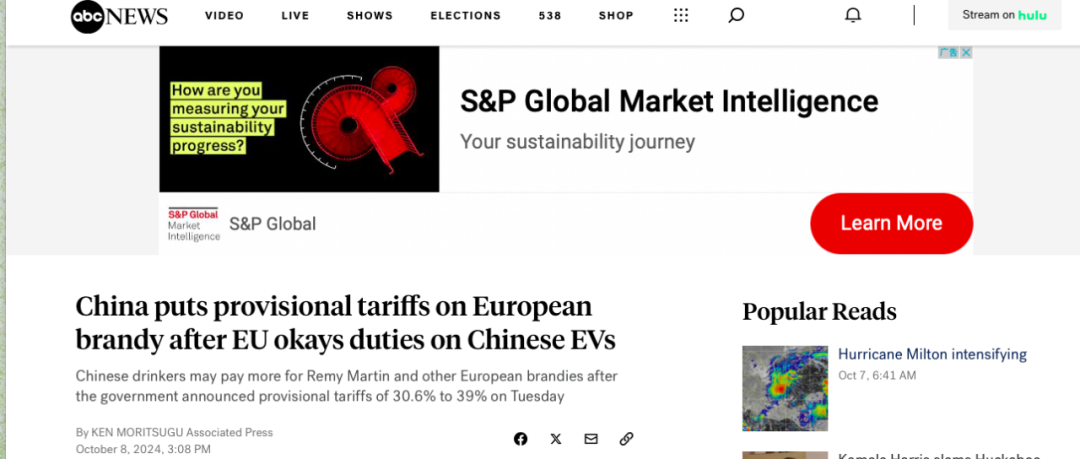 这次白兰地拜访主要针对法国干邑和阿马尼亚克等访佛烈酒制造商。临时关税因品牌而异,访佛于欧盟对中国制造的电动汽车征收的关税。举例,马爹利的居品靠近30.6%的关税,而雷米·马丁和亨尼西的关税分离为38.1%和39%。包括一些西班牙制造商在内的数十家公司正在被征收关税。