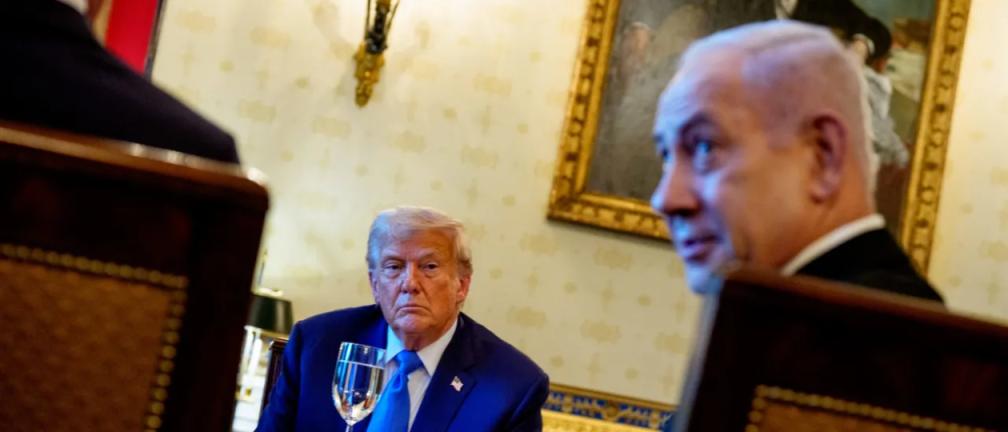 以色列总理内塔尼亚胡探望白宫与特朗普会晤时的相片。《逐日连线》报谈配图