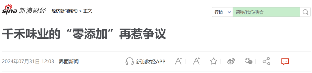 本年上半年千禾味业功绩的放缓似乎也与添加剂斟酌。
